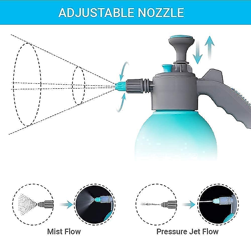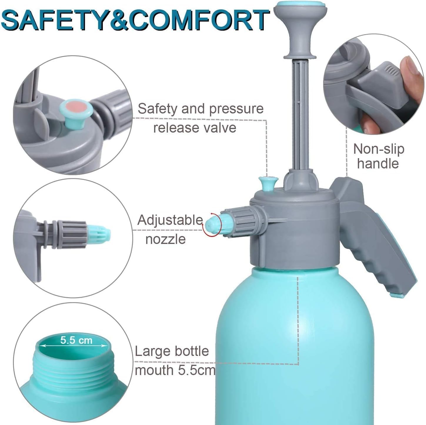 - 【अच्छी क्षमता और प्रीमियम गुणवत्ता】बोतल स्प्रे मोटी बैरल दीवार के साथ पीई सामग्री से बना है, पीपी नोजल पहनने के लिए प्रतिरोधी है, स्थायित्व के लिए दरार करना आसान नहीं है। 2 लीटर की बड़ी क्षमता आपके उपयोग के लिए पर्याप्त पानी रख सकती है। पर्याप्त वायु दबाव जोड़ने के बाद, 700 मिलीलीटर पानी का छिड़काव किया जा सकता है।