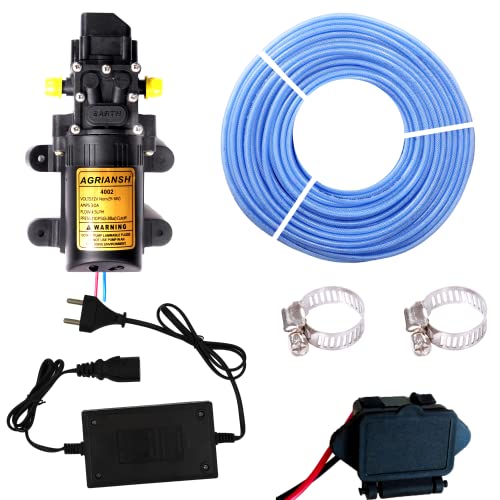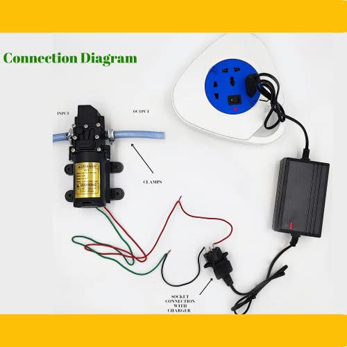 एग्रियनश हैवी ड्यूटी 12Vdc इलेक्ट्रिक बैटरी स्प्रेयर डायाफ्राम 110 Psi पंप मोटर प्लस पावर चार्जर, रेगुलेटर, क्लैंप और होज़पाइप सोलर पैनल सफाई, बागवानी, घर की सफाई, एक्वेरियम में उपयोग किया जाता है