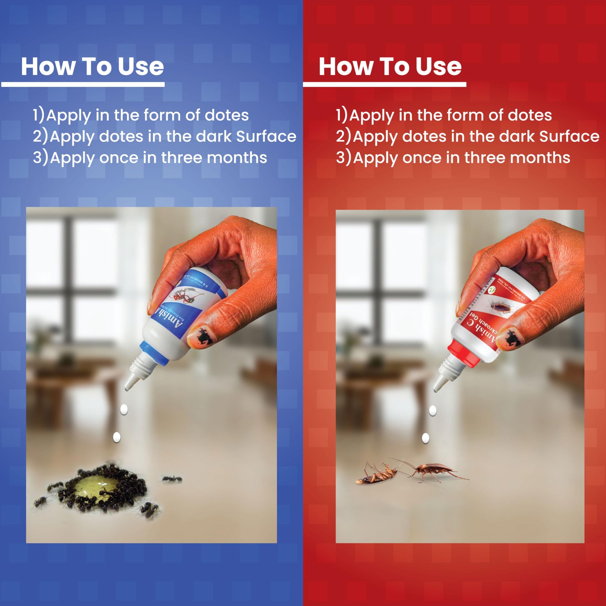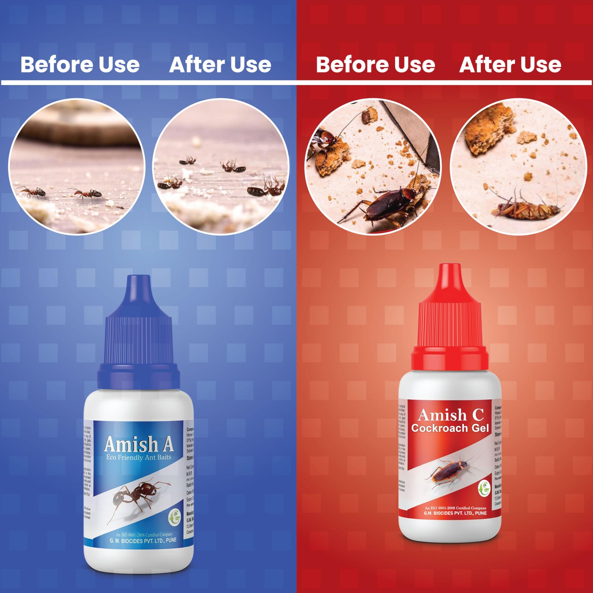 अमिश-ए इको-फ्रेंडली चींटी रिपेलेंट/चींटी जेल 20 ग्राम अमिश-सी कॉकरोच जेल 20 ग्राम कॉम्बो पैक के साथ घर/चींटी जेल/कॉकरोच लिक्विड/गार्डन, किचन, दीवार किनारों के लिए - 2 बोतल का पैक