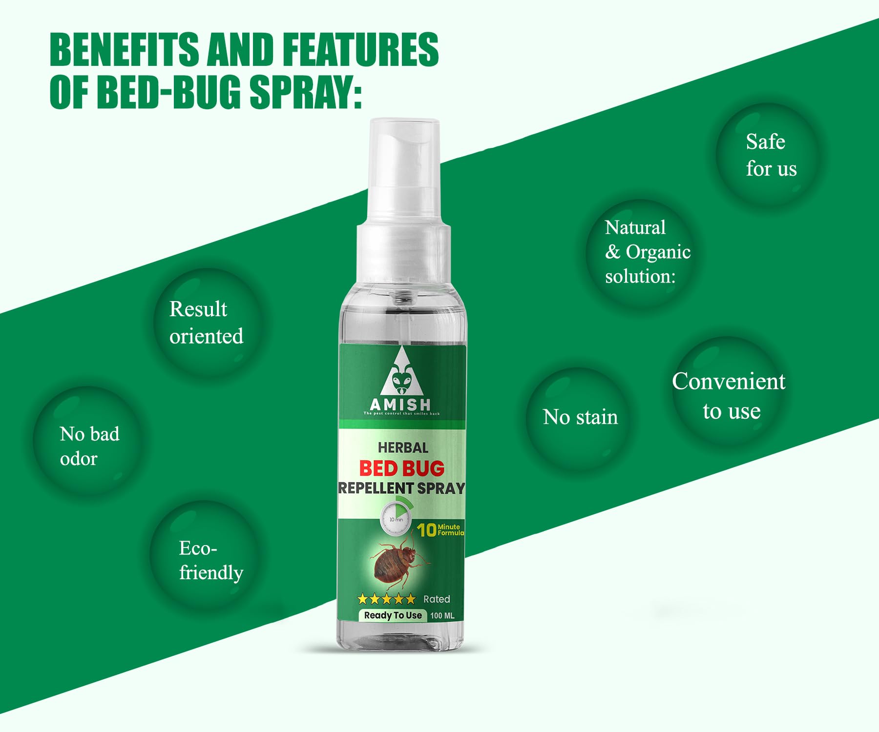 अमिश- बेड-बग रिपेलेंट किलर हर्बल स्प्रे/रेडी टू यूज बेड-बग किलर स्प्रे खटमल स्प्रे घर, किचन के लिए अमिश प्लांट बेस्ड एक्सट्रेक्ट के साथ बेड-बग्स के लिए 100% प्रभावी 100ML