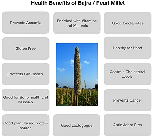 - आसान पाचन - स्वस्थ आंत समग्र स्वास्थ्य का संकेत है और बाजरा बाजरा अच्छे पाचन को प्राप्त करने और कब्ज को रोकने में सहायता करता है। बाजरा साबुत अनाज लस मुक्त होता है और इसमें उच्च अघुलनशील फाइबर होता है जो पाचन तंत्र को साफ रखता है