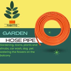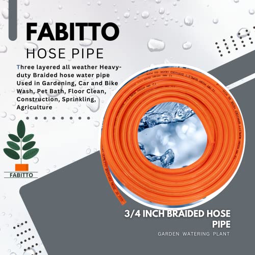 FABITTO गार्डन हेवी-ड्यूटी ब्रेडेड होज़ पाइप होम गार्डन, कार धोने, फर्श की सफाई और पालतू जानवरों को स्नान कराने के लिए 3 क्लैंप के साथ, नारंगी (3/4 इंच होज़ पाइप, 10 मीटर)