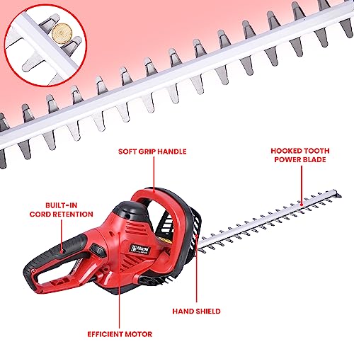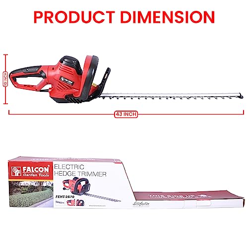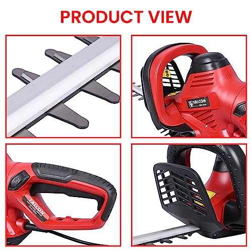 फाल्कन FEGT-2670 600 वॉट इलेक्ट्रिक हेज ट्रिमर 60 सेमी ब्लेड कटिंग लंबाई मैकेनिकल ब्रेक और झाड़ियों छोटे पेड़ों को ट्रिम करने के लिए विस्तारित पहुंच के साथ