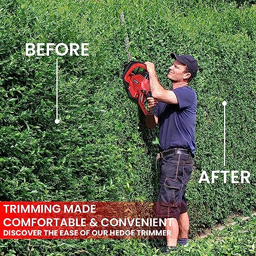 - शक्तिशाली कटिंग प्रदर्शन: हेज ट्रिमर में एक मजबूत 600W मोटर है, जो कुशल और सटीक कटिंग के लिए पर्याप्त शक्ति प्रदान करती है। इस स्तर की शक्ति के साथ, यह आसानी से हेजेज और झाड़ियों को काट देता है, जिससे आपके बगीचे की साफ-सुथरी और सुव्यवस्थित उपस्थिति सुनिश्चित होती है।