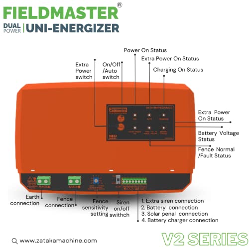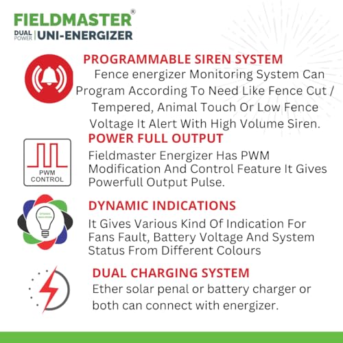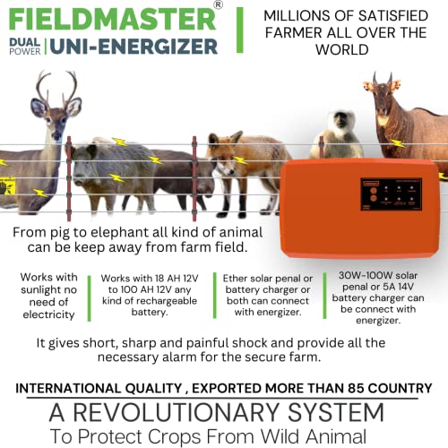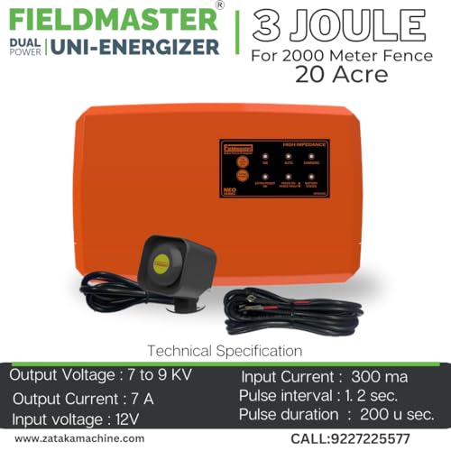 फील्डमास्टर इलेक्ट्रिक और सोलर ऑपरेटेड ज़टका मशीन बाड़ एनर्जाइज़र गार्ड 2 जूल 1000 मीटर 10 एकड़ क्षेत्र कवर (20 एकड़)