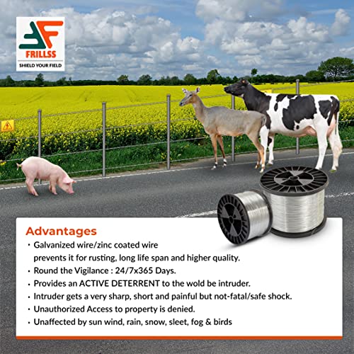 Frillss ब्रांड गैल्वेनाइज्ड सोलर फेंसिंग, झटका, बाउंड्री के लिए क्लच वायर 1.5mm 1000 मीटर 10 KG कृषि, उद्यान, फार्महाउस, औद्योगिक और कारखाने का उपयोग करें