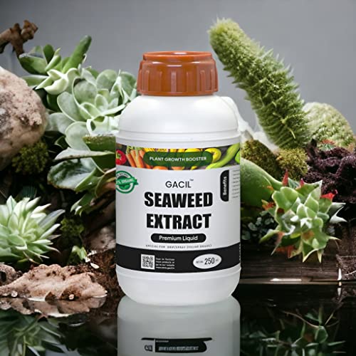 GACIL लिक्विड सीवीड कॉन्सेंट्रेट ऑर्गेनिक ग्रोथ 250ml माप कैप के साथ सभी इनडोर और आउटडोर पौधों और सब्जियों, फलों और फूलों के पौधों के लिए 100ml उर्वरक