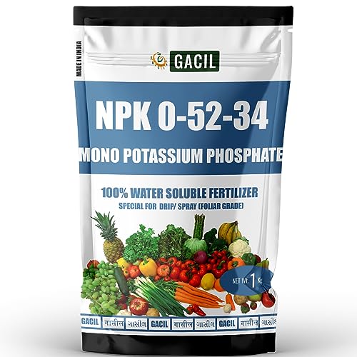 जीएसीआईएल एमकेपी (मोनो पोटेशियम फॉस्फेट) 00-52-34 उर्वरक विकास प्रमोटर | इनडोर-आउटडोर पौधों में बागवानी का उपयोग | ड्रिप-मिट्टी-स्प्रे में कृषि उपयोग (1 किग्रा)