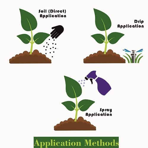 - स्प्रे और ड्रिप अनुप्रयोग: मिश्रण अनुपात: 1 लीटर पानी में 6-7 ग्राम। मिट्टी में प्रयोग: 4 से 5 ग्राम पाउडर सीधे जड़ों के पास लगाएं। बेहतर परिणाम के लिए 20-25 दिनों के अंतराल में दोबारा आवेदन करें।