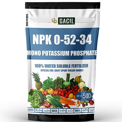 जीएसीआईएल एमकेपी (मोनो पोटेशियम फॉस्फेट) 00-52-34 उर्वरक विकास प्रमोटर | इनडोर-आउटडोर पौधों में बागवानी का उपयोग | ड्रिप-मिट्टी-स्प्रे में कृषि उपयोग (500 ग्राम)