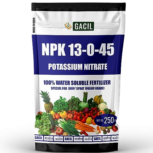 जीएसीआईएल पोटेशियम नाइट्रेट एनपीके उर्वरक 13:00:45 | 100% पानी में घुलनशील | फूल और पौधे की वृद्धि (उपयुक्त अनुप्रयोग: सीधी मिट्टी, पत्तेदार स्प्रे, ड्रिप) 250 ग्राम