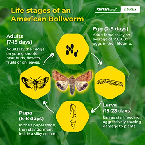 GAIAGEN अमेरिकन बॉलवर्म लूर कॉम्बो पैक - फेरोमोन ल्यूर अमेरिकन बॉलवॉर्म (हेलीकोवर्पा आर्मीगेरा) और कीट फ़नल ट्रैप के लिए | शामिल है - 10 लालच और 10 जाल