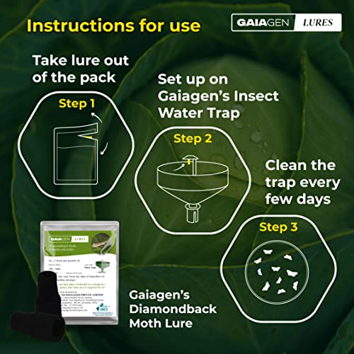 GAIAGEN डायमंडबैक मोथ कॉम्बो पैक - डायमंडबैक मोथ (प्लूटेला जाइलोस्टेला) और कीट जल जाल के लिए फेरोमोन लूर 1.6L | शामिल है - 10 लालच और 10 जाल