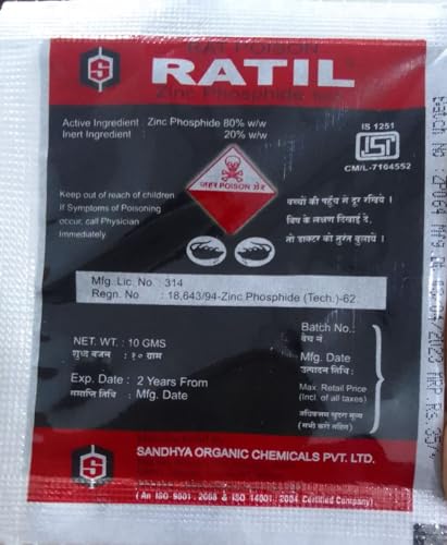 जेनेरिक शांध्या ग्रुप रैटिल चूहा नाशक पाउडर 10 ग्राम - 50 का पैक | माउस कंट्रोल रोडेंट पाउडर | जिंक फॉस्फाइड 80% - चूहे/माउस नियंत्रण के लिए कृंतकनाशक - 500 ग्राम