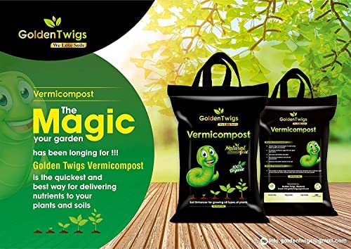 गोल्डन ट्विग्स वर्मीकम्पोस्ट 4 किग्रा - शुद्ध कृमि कास्टिंग, 100% जैविक प्राकृतिक उर्वरक - 4 किग्रा