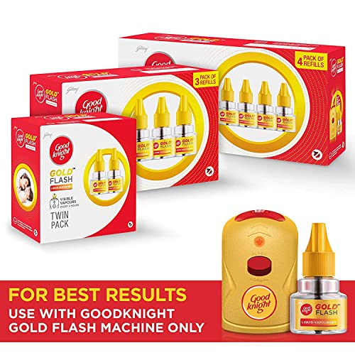 - इसमें शामिल हैं: गुडनाइट गोल्ड फ्लैश लिक्विड वेपोराइजर रिफिल की 3 इकाइयां, प्रत्येक 45 मिली