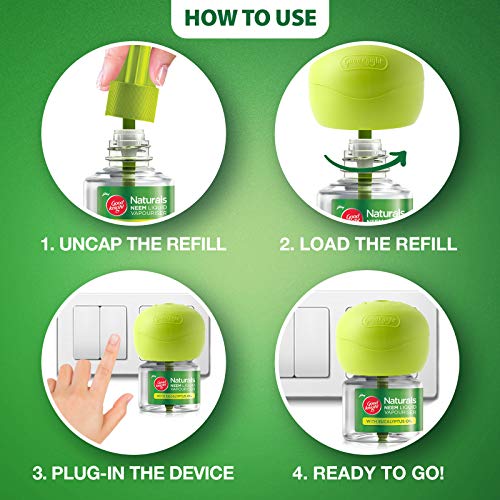 गुड नाइट नैचुरल्स नीम लिक्विड वैपोराइजर मॉस्किटो रिपेलेंट | कॉम्बो पैक मशीन + 3 रिफिल का पैक | 100% प्राकृतिक सक्रिय सामग्री (बच्चों और वयस्कों के लिए सुरक्षित)