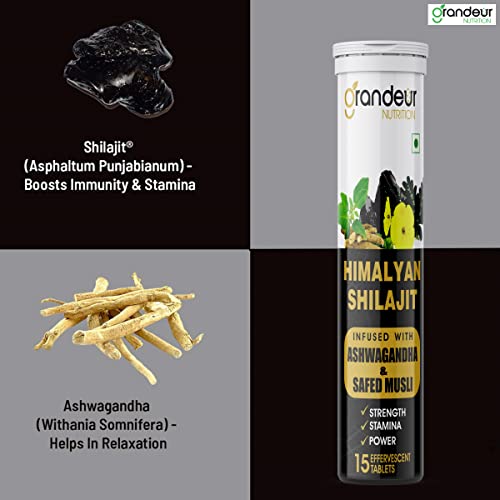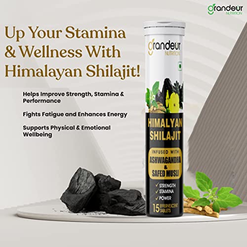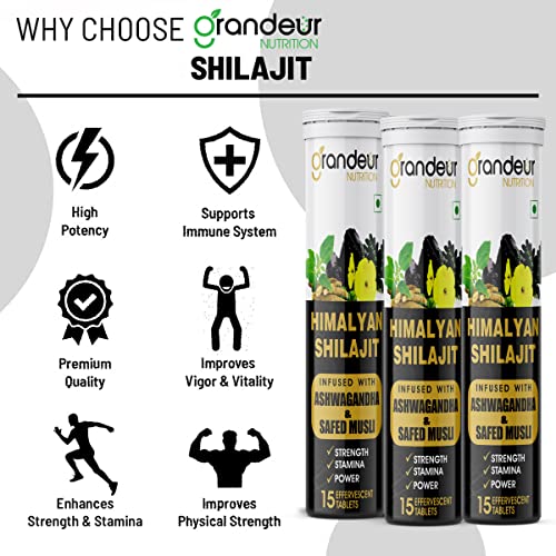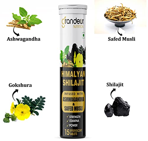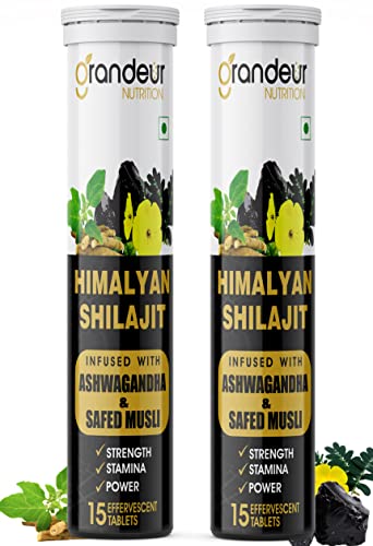 पुरुषों के लिए जीवन शक्ति, शक्ति, सहनशक्ति, प्रदर्शन के लिए गोक्षुरा, केसर और सफेद मूसली के साथ 2 शिलाजीत अश्वगंधा अर्क एफ़र्जेसेंट गोलियों का भव्य पैक | 30 टैब | 100% प्राकृतिक | प्रीमियम जीवन शक्ति |