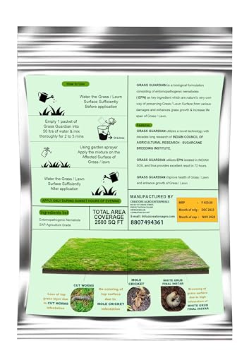 ग्रास गार्जियन - जैविक लॉन कीट नियंत्रण | 100% पर्यावरण-अनुकूल, रसायन मुक्त, मनुष्यों और पालतू जानवरों के लिए सुरक्षित | कुल क्षेत्र कवरेज - 2500 वर्ग फीट।