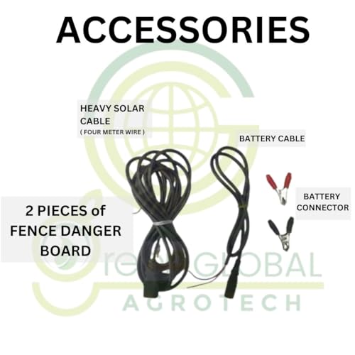 - क्षमता - ग्रीन ग्लोबल एग्रोटेक सोलर फेंस एनर्जाइज़र में 5000V का आउटपुट वोल्टेज है। आउटपुट पल्स अवधि 1 सेकंड है। यह सोलर फेंस एनर्जाइज़र 12V डीसी बैटरी है।