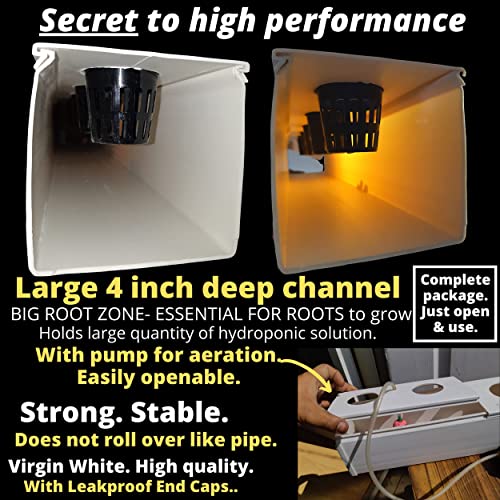 - अच्छी जड़ निर्माण के लिए 4 इंच गहरा जड़ क्षेत्र। सभी प्रकार के छोटे पौधे उगा सकते हैं - पालक, सलाद, बैंगन, शिमला मिर्च, जड़ी-बूटियाँ आदि। बाहरी और इनडोर दोनों उपयोग के लिए। नोट - पौधे मौसम की स्थिति के अनुसार ही बढ़ेंगे. सामान्य से ठंडा मौसम हीड्रोपोनिक्स के लिए उपयुक्त है।