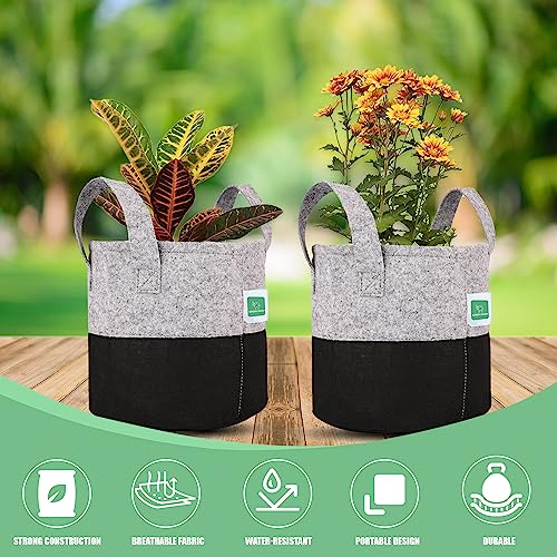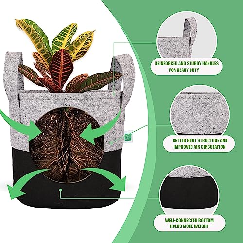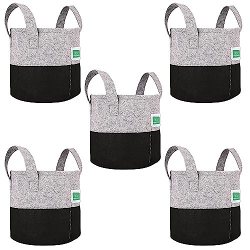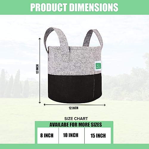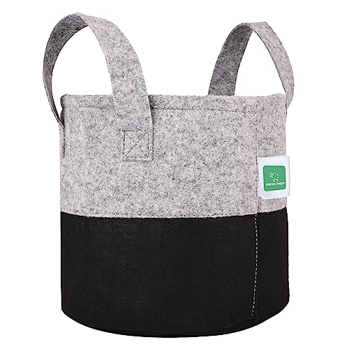 ग्रीनशीप जियो फैब्रिक ग्रो बैग यूवी ट्रीटेड गार्डनिंग कॉटन पॉट्स टेरेस इंडोर आउटडोर होम बालकनी नर्सरी पत्तेदार सब्जी फल और फूल (काला और ग्रे गोल 400 जीएसएम आकार 12x12 5 का पैक)