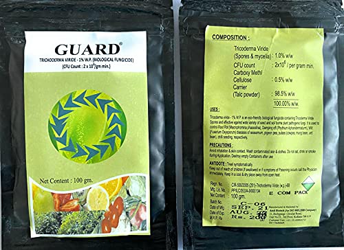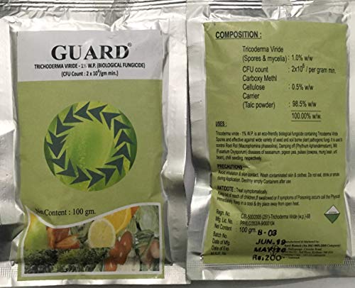विवरण: शीतकालीन पेड़ों की छंटाई। गार्ड ट्राइकोडर्मा विराइड का पेस्ट बना लें। 1 लीटर पानी में 100 ग्राम। अब 1/2 इंच से ऊपर के व्यास वाले काटे गए कटों पर पेस्ट करें और 1/2" से नीचे के गूदे पर 5% गार्ड घोल का छिड़काव करें। आपको कैंकर और सड़न रोगों से सुरक्षा मिलेगी जो फलों के पेड़ों में उत्पादन को प्रभावित करते हैं। ट्राइकोडर्मा विराइड एक पंजीकृत है उड़द में जड़ सड़न (मैक्रोफोमिना फेजोलिना) के नियंत्रण के लिए। निवारक के रूप में 4 ग्राम प्रति किलोग्राम बीज का उपयोग करें। 10 ग्राम प्रति लीटर पानी का उपयोग करें, पौधों के चारों ओर की मिट्टी को भिगो दें, जो मुरझाने के लिए अतिसंवेदनशील हैं। गार्ड (ट्राइकोडर्मा विरिडे) का उपयोग कैसे करें फसलें: बैंगन, आलू , मिर्च, टमाटर, खीरे, कटे और गमले के फूल, बाग, वाइनयार्ड, ग्रीनहाउस, लॉन और नर्सरी आदि में सजावटी पौधे। लक्षित कीट और रोग: पाइथियम एसपीपी, गैनोडर्मा एसपीपी, राइजोक्टोनिया सोलानी, फ्यूसेरियम एसपीपी, बोट्रीटिस सिनेरिया, स्क्लेरोटियम एसपीपी। , स्क्लेरोटिनिया एसपीपी और यूस्टिलोगो एसपीपी, आदि। इसका उपयोग जड़ सड़न, डैम्पिंग ऑफ, विल्ट आदि को नियंत्रित करने के लिए किया जाता है। आवेदन की विधि: समान अनुप्रयोग प्राप्त करने के लिए ट्राइकोडर्मा विराइड को पर्याप्त पानी (5 ग्राम/लीटर) में डालें। 100 की दर से लागू करें -200 ग्राम प्रति घन मीटर (ढीला) ग्रीनहाउस पॉटिंग मिश्रण, मिट्टी या रोपण बेड। ट्राइकोडर्मा विराइड को फिल्टर से छानने के बाद कम दबाव वाले पानी वाले नोजल जैसे पंखे के नोजल या अन्य पानी देने वाले सिस्टम (ड्रिप सिस्टम) के माध्यम से लगाया जा सकता है। निलंबन बरकरार रखने के लिए आंदोलन करें। सर्वोत्तम प्रभाव के लिए, बीजारोपण या रोपाई के लिए उपयोग से कई दिन पहले पॉटिंग मिश्रण का उपचार करें। बल्बों और सजावटी पौधों के लिए: रोपण से पहले ट्राइकोडर्मा विराइड सस्पेंशन (100 ग्राम/लीटर) में बल्बों को डुबोएं। आवेदन की आवृत्ति: सब्जियों के सजावटी पौधों में दो से तीन अनुप्रयोगों और लॉन और लैंडस्केप फसलों में 4-5 अनुप्रयोगों की सिफारिश की जाती है। पौधे के विकास के शुरुआती चरणों के दौरान अनुप्रयोग विकास के महत्वपूर्ण चरणों के दौरान पौधे की रक्षा करते हैं। खुराक: मिट्टी में प्रयोग: 5 किग्रा/हेक्टेयर किसी भी जैविक उर्वरक के साथ (रोगजनक संदूषकों के बिना)। बीज उपचार: मानक गीले उपचार के अनुसार 4-5 ग्राम प्रति किलोग्राम बीज की दर से। अंकुर उपचार: रोपण से पहले 100 ग्राम/लीटर की दर से।