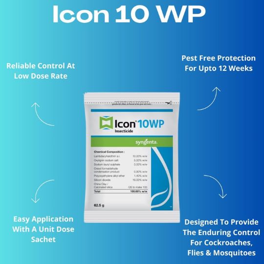 - तत्काल प्रभाव: ICON 10WP मच्छरों, मक्खियों, तिलचट्टों और अन्य रेंगने वाले कीड़ों के खिलाफ तत्काल परिणाम देता है।