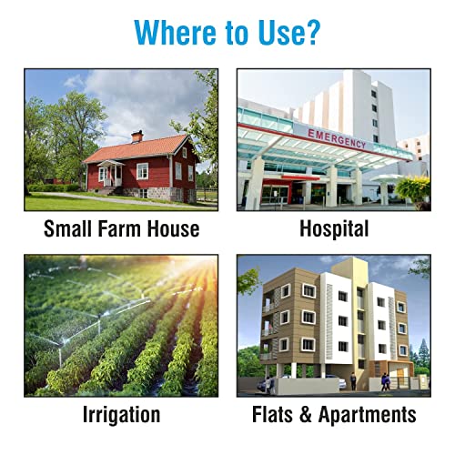 - पंप का उपयोग घरेलू, घरेलू, फार्महाउस और ओवरहेड टैंक वाटर पंपिंग उद्देश्य के लिए किया जा सकता है