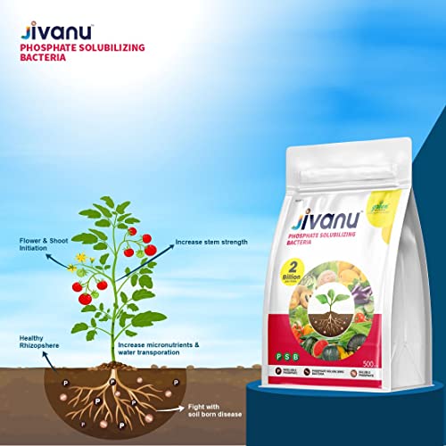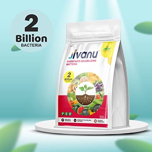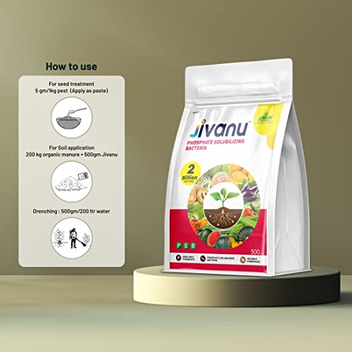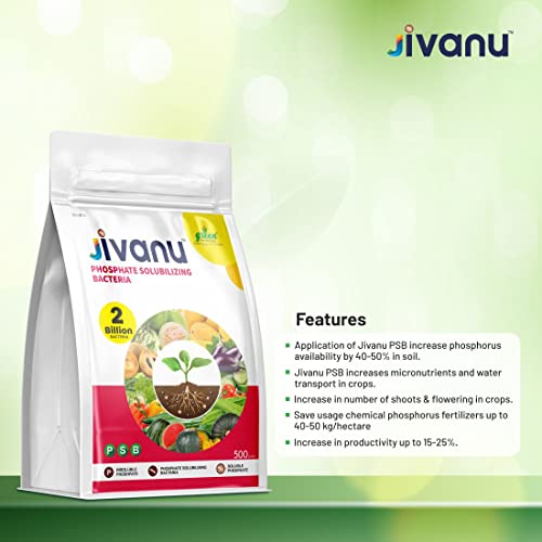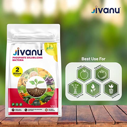 जिवानु पीएसबी (फॉस्फेट घुलनशील बैक्टीरिया - पीएसबी) कृषि, उद्यान, मिट्टी की उर्वरता और पौधों के पोषण के लिए जैव उर्वरक। 1 का पैक (500 ग्राम)।