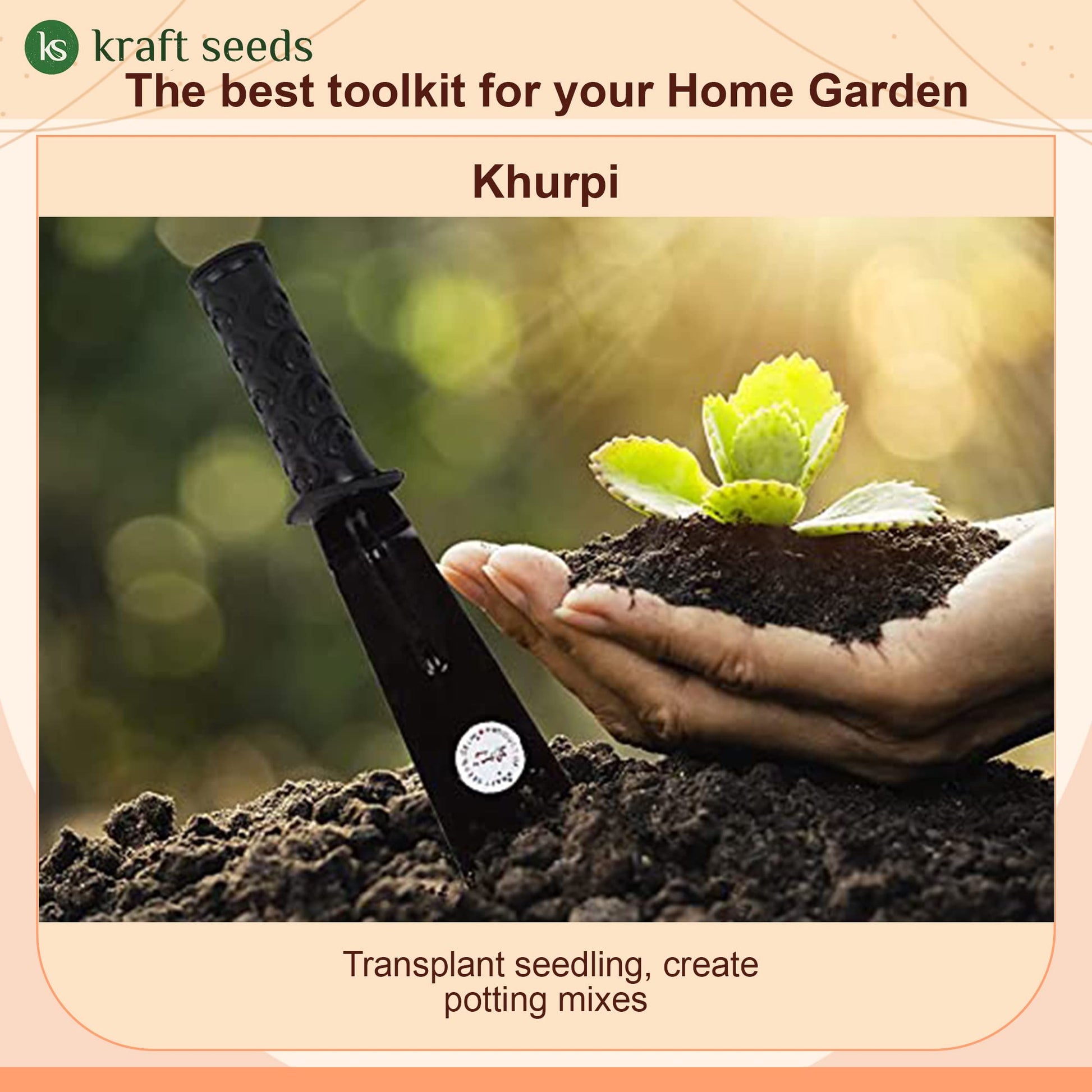 विवरण: खुरपा एक छोटा हैंडल वाला काटने वाला उपकरण है जिसमें एक सपाट ब्लेड होता है जिसका उपयोग छोटे बगीचों या सब्जी के खेतों में मिट्टी खोदने और निराई करने के लिए किया जाता है। पारंपरिक रूप से इसका उपयोग बैठने की मुद्रा में किया जाता है। इसका उपयोग विभिन्न प्रक्रियाओं जैसे कि जुताई, क्यारी तैयार करना, निराई करना और छोटे पैमाने पर खुदाई के लिए किया जाता है।