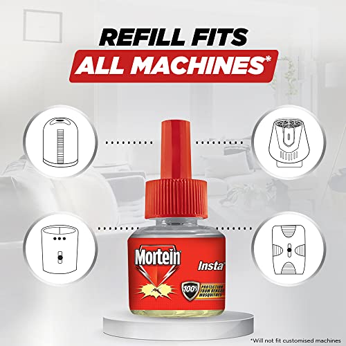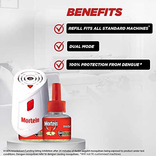Mortein Insta5 मच्छर प्रतिरोधी | कॉम्बो पैक - मशीन + 1 रिफिल (45ml) | डेंगू मच्छरों से 100% सुरक्षा, सफेद