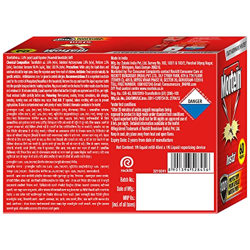मॉर्टिन इंस्टा 5 मॉस्किटो रिपेलेंट, जैसा कि नाम से पता चलता है, मच्छरों को तुरंत मारने में प्रभावी है, आमतौर पर प्लग इन करने के 5 मिनट के भीतर। रिफिल बोतल सभी उपकरणों में फिट हो जाती है (गुड नाइट एक्सप्रेस को छोड़कर)। इसके अलावा, मॉर्टीन डिवाइस में एक बेहतर हीटिंग सिस्टम है जो कम बिजली की खपत और उच्च और निम्न तीव्रता मोड के साथ दोहरी मोड मशीन सुनिश्चित करता है, सुनिश्चित करें कि आप और आपका परिवार हमेशा सुरक्षित रहें। प्रति रात 8 घंटे के स्वीकृत उपयोग में लिक्विड वेपोराइजर की बोतल 45 रातों तक चलेगी।