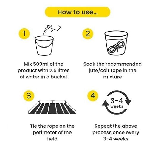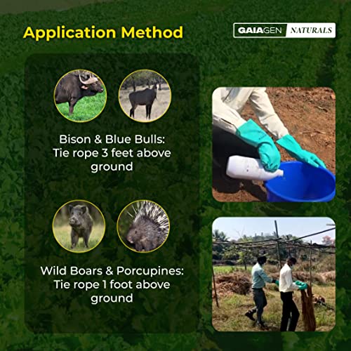 पेश है GAIAGEN नीलबो नेचुरल फ़ॉर्मूलेशन , एक क्रांतिकारी और मानवीय समाधान जो जानवरों को नुकसान पहुँचाए बिना आपकी फसलों की सुरक्षा के लिए बनाया गया है। यह अभिनव जैविक रिपेलन्ट आपके खेत के चारों ओर एक सुरक्षात्मक अवरोध बनाता है, जिससे आपकी मानसिक शांति सुनिश्चित होती है। GAIAGEN 100% प्राकृतिक और गैर-विषाक्त है, जो इसे आपके पौधों, पालतू जानवरों और परिवार के लिए सुरक्षित बनाता है। यह जंगली सूअर, साही, बाइसन और नीलगाय को प्रभावी ढंग से दूर रखता है, जिससे आप बिना किसी डर के अपनी ज़मीन पर खेती कर सकते हैं।