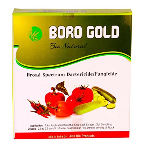 - शैवाल अल्टरनेरिया एन्थ्रेक्नोज ब्लैक स्पॉट-बॉयट्राइटिस (ग्रे मोल्ड) - डाउनी मिल्ड्यू (प्लास्मोपारा) इरविनिया (रूट रोट) लीफ स्पॉट - फाइटोफ्थोरा (ब्लाइट्स, रॉट्स) - पाउडरी मिल्ड्यू (अनसिनुला) सहित फंगल रोगों के निवारक उपचार के लिए बोरो-गोल्ड की सिफारिश की जाती है। स्यूडोमोनास पाइथियम राइजोक्टोनिया रस्ट स्कैब स्मटएक्सैंथोमोनास विल्ट्स एंड ब्लाइट्स।