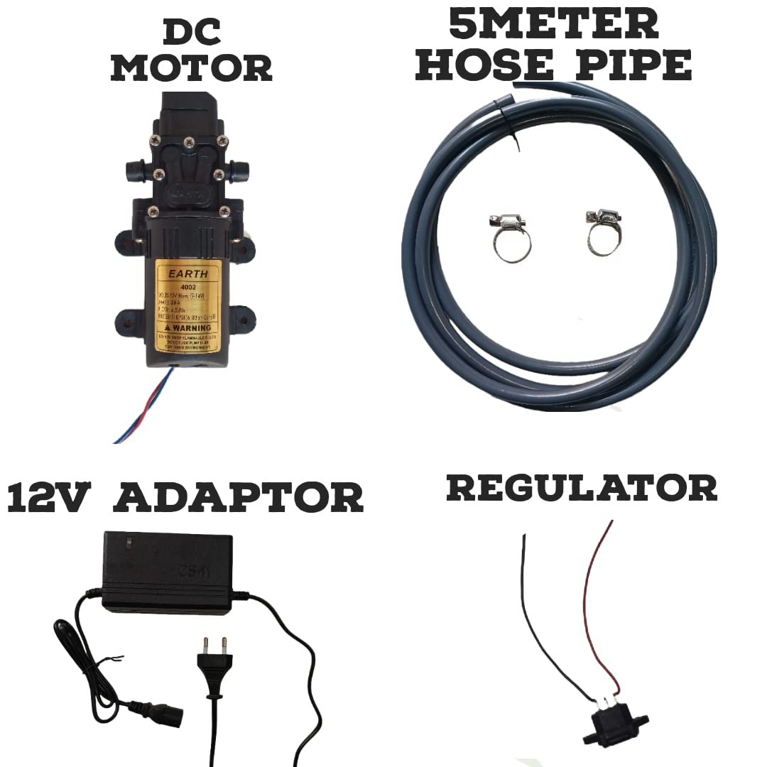 ताज सुपर 12 वोल्ट 3.0 एम्पियर डीसी स्प्रेयर मोटर 110 पीएसआई + चार्जर / एडाप्टर + नियामक + होज़पाइप 5 मीटर (15 फुट) + क्लैंप बगीचे की सफाई और सौर पैनल साफ और कृषि के लिए उपयोग किया जाता है