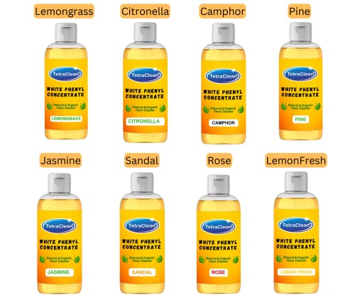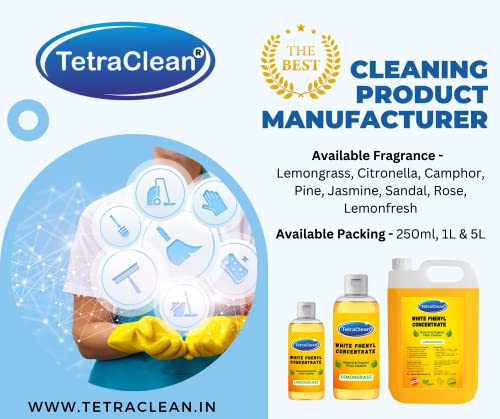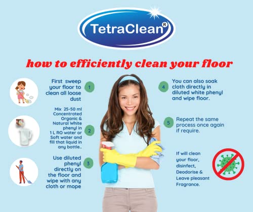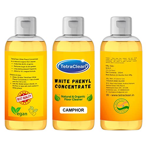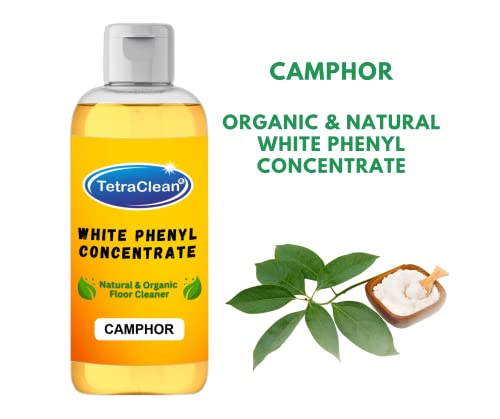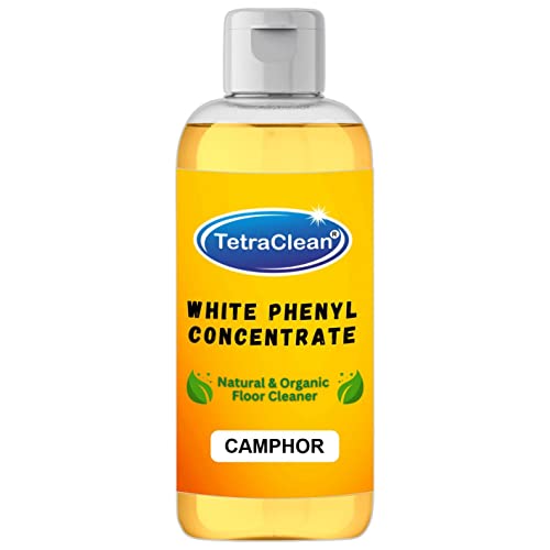 टेट्राक्लीन कैम्फर व्हाइट फिनाइल कॉन्सेंट्रेट 250 एमएल | खुशबूदार तेल आधारित प्राकृतिक और जैविक फ़्लोर क्लीनर | 8-10 लीटर सफेद फिनाइल बनाता है | सतह क्लीनर | निस्संक्रामक और दाग हटानेवाला