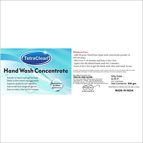 - टेट्राक्लीन पाउडर से हैंड वॉश जेल फॉर्मूला आसानी से 10 लीटर हैंड वॉश जेल बनाता है। यह त्वचा के लिए मुलायम लेकिन कीटाणुओं के लिए सख्त होता है।
