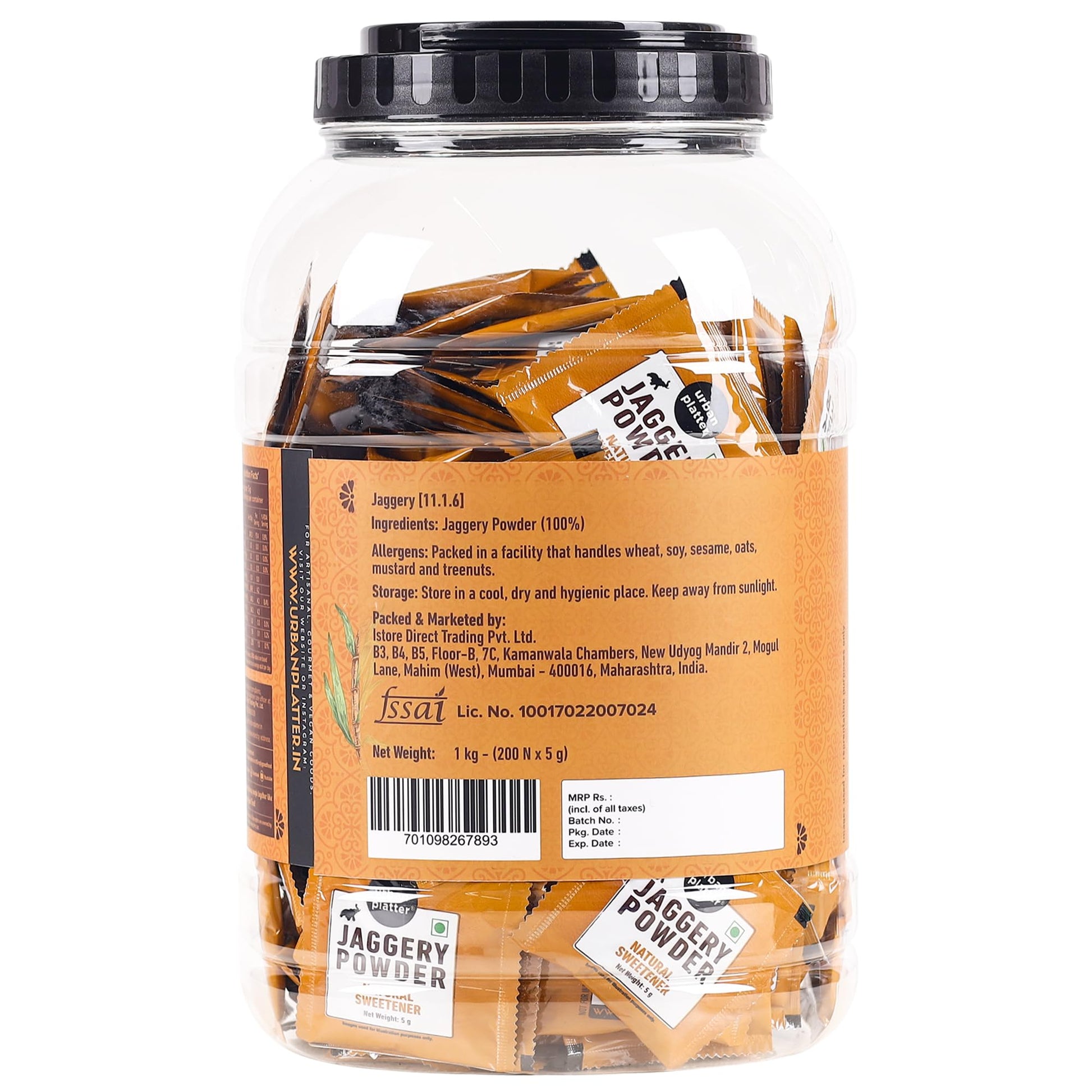 अर्बन प्लैटर गुड़ पाउडर पाउच, 1Kg / 35.2oz [200 पाउच, 5 ग्राम प्रत्येक]
