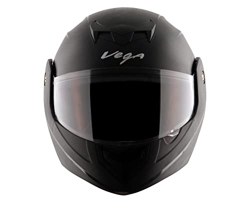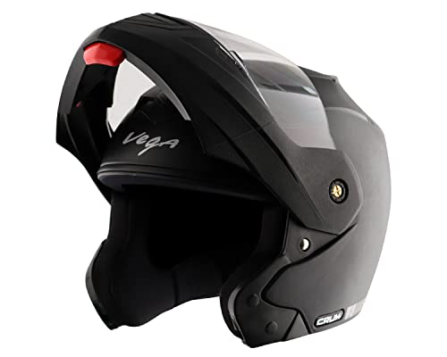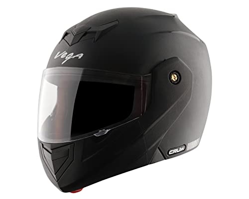 Vega Crux ISI प्रमाणित फ्लिप-अप हेलमेट पुरुषों और महिलाओं के लिए क्लियर वाइज़र के साथ (काला, साइज़:M)