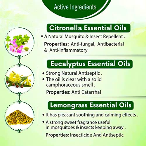 - 【प्राकृतिक मच्छर प्रतिरोधी 】: सावधानीपूर्वक चयनित शक्तिशाली और प्राकृतिक मच्छर प्रतिरोधी सामग्री और यह 100% प्राकृतिक और जैविक उत्पाद है। यह लेमनग्रास ऑयल, यूकेलिप्टस ऑयल और सिट्रोनेला ऑयल के प्रभावी फॉर्मूलों का एकदम सही मिश्रण है जिसमें कीटनाशक और एंटीसेप्टिक गुण होते हैं, जो मच्छरों और कीड़ों को दूर रखने में मदद करते हैं और उन्हें आपके परिवार से दूर रखते हैं।