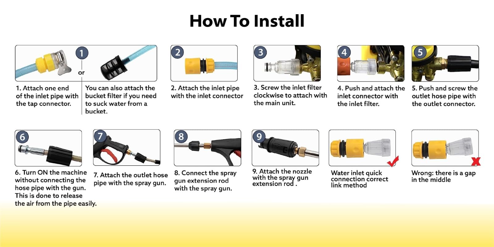 - शामिल सहायक उपकरण: वोस्चर उच्च दबाव पंप टैप कनेक्टर, क्रिस्टल फिल्टर, त्वरित कनेक्टर, बाल्टी फिल्टर, शॉप डिस्पेंसर, आउटलेट पाइप, प्रेशर गन और एक्सटेंशन रॉड के साथ आता है।