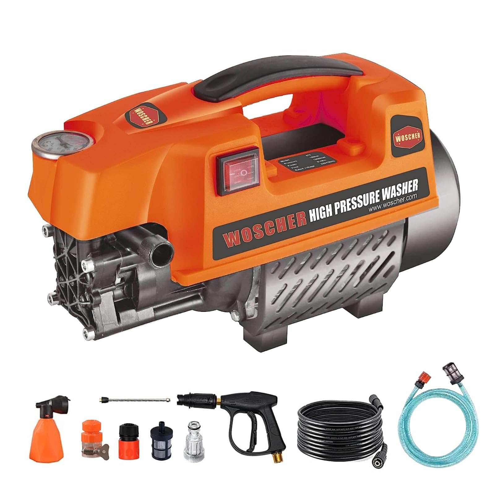 वोशर 878 वाटरप्रो वॉशर हाई प्रेशर पंप मशीन, 1800 वॉट, 150 बार, 8L/ मिनट जल प्रवाह दर, 8 मीटर आउटलेट नली, पोर्टेबल, कार, बाइक और घर की सफाई के उद्देश्य के लिए