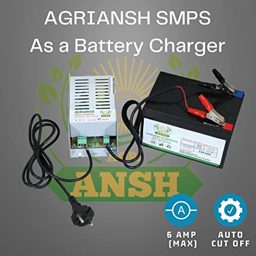 - हे AGRIANSH 12V DC आणि 5 Amp SMPS आधारित बॅटरी चार्जर / ऑटो कट ऑफ सिस्टमसह वीज पुरवठा.
