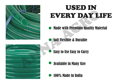 ANNA AGRO 3 लेयर्ड हेवी ड्युटी ब्रेडेड वॉटर होज पाईप (आकार: 3/4, 0.75 इंच, लांबी: 50 मीटर, हिरवा) जोडण्यास सुलभ, गार्डन, कार वॉश, फ्लोअर क्लीन, पेट बाथ.
