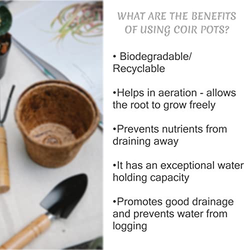 - इको-फ्रेंडली: हे कॉयर पॉट्स कॉयर फायबरपासून बनलेले आहेत जे 100% बायो-डिग्रेडेबल आहेत.