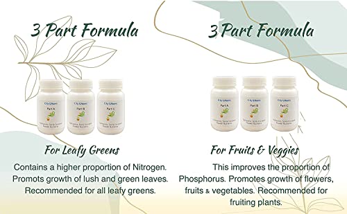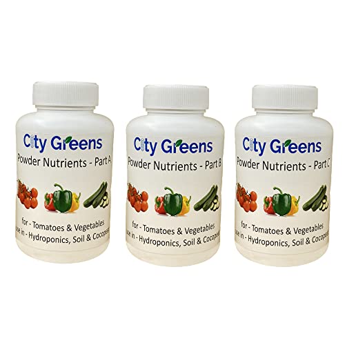 टोमॅटो, मिरपूड, काकडी, झुचीनी आणि सर्व भाज्यांसाठी सिटी ग्रीन्स हायड्रोपोनिक न्यूट्रिएंट्स पावडर - एकूण 3 बाटल्या भाग A, B आणि C 500 लिटर पोषक द्रावण तयार करते.