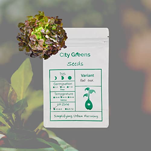 सिटी ग्रीन्स रेड ओक लेट्युस बिया (आयात) होम गार्डनसाठी, हायड्रोपोनिक लेट्युस बिया - एकूण 50 बिया.