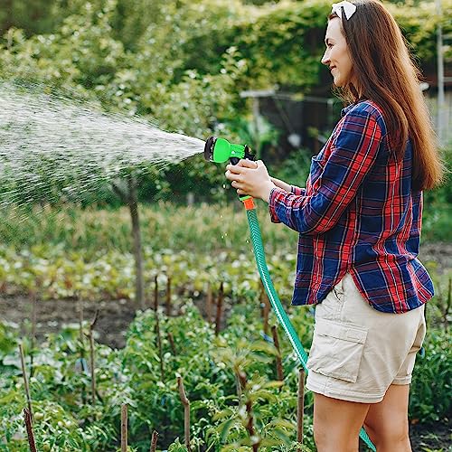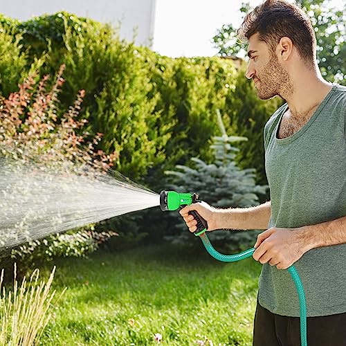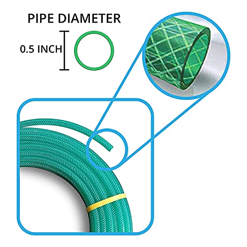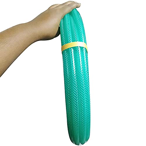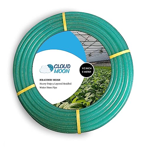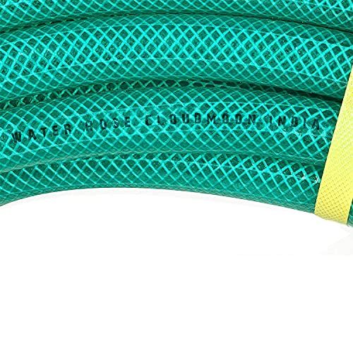 क्लाउड मून हेवी ड्युटी अत्यंत टिकाऊ पीव्हीसी ग्रीन ब्रेडेड वॉटर होज पाईप 8 पॅटर्न नोजल स्प्रेअर आणि 3 क्लॅम्प्स (1/2 इंच) (5 मीटर)