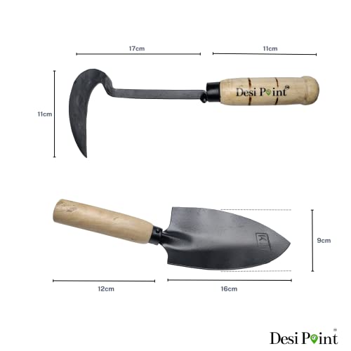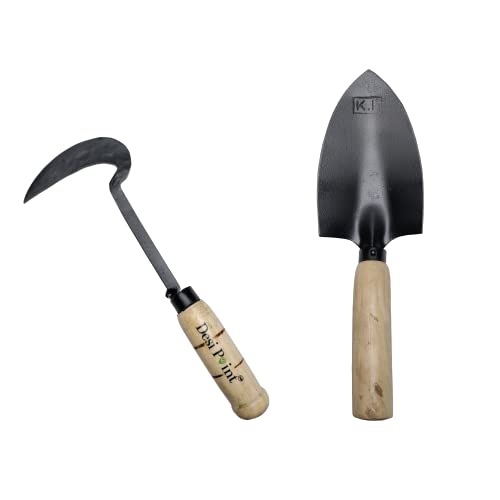 बागकामासाठी देसी पॉइंट हँडमेड खुरपी आणि बिग हँड ट्रॉवेल (खुरपी + बिग ट्रॉवेल)
